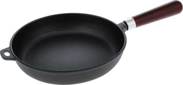 - Выбирая сковороду нужно уделить внимание качеству ее ручки. Она должна быть изготовлена из дерева или жароустойчивого пластика. Крепление ручки лучше выбирать без использования болтов, поскольку они вскоре начинают ржаветь.
