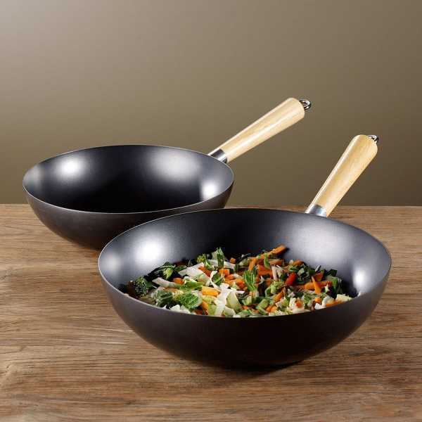 Это уникальное приспособление, которое появилось у нас из Китая. Данная сковорода напоминает форму конуса, которая расширяется сверху. Если смотреть на традиционно изготовленную утварь, то с двух сторон она оборудована ручками, а дно имеет небольшие размеры и высокие стенки.