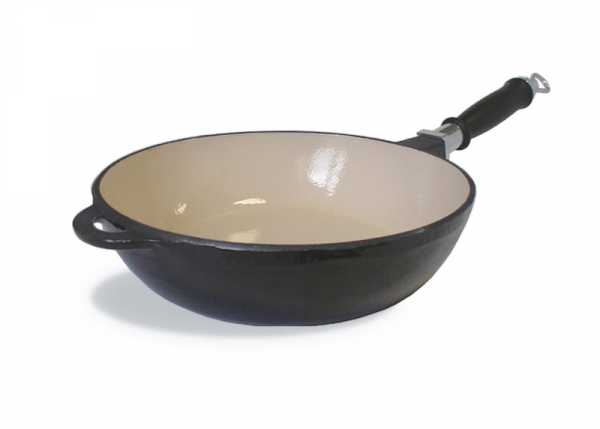 Такой тип сковороды родом из Китая. Внешне сковорода напоминает круглую конструкцию с высокими бортиками и ручками-ушками. Основа сковороды резко расширена к верху, а днище маленького диаметра. В комплект входит куполообразная крышка и решетка для приготовленной еды. Тонкое дно идеально подходит для быстрого приготовления соусов и маринадов.