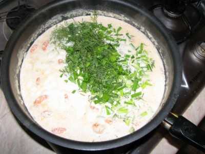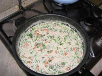 - ΠΠ°Π΅ΠΌ ΡΠΎΡΡΡ Π·Π°ΠΊΠΈΠΏΠ΅ΡΡ ΠΈ Π·Π°ΠΏΡΠ°Π²Π»ΡΠ΅ΠΌ Π±Π»ΡΠ΄ΠΎ ΡΠΎΠ»ΡΡ ΠΈ ΠΏΠ΅ΡΡΠ΅ΠΌ ΠΏΠΎ Π²ΠΊΡΡΡ. ΠΠ° ΠΌΠ°Π»Π΅Π½ΡΠΊΠΎΠΌ ΠΎΠ³Π½Π΅ ΡΠΎΠΌΠΈΠΌ Π½Π΅ Π±ΠΎΠ»ΡΡΠ΅ 2 ΠΌΠΈΠ½ΡΡ. ΠΠΎΠ±Π°Π²Π»ΡΠ΅ΠΌ ΠΌΠ΅Π»ΠΊΠΎ Π½Π°ΡΡΠ±Π»Π΅Π½Π½ΡΡ Π·Π΅Π»Π΅Π½Ρ ΠΈ Π½Π°ΠΊΡΡΠ²Π°Π΅ΠΌ ΠΊΡΡΡΠΊΠΎΠΉ. ΠΠ°Π΅ΠΌ Π½Π°ΡΡΠΎΡΡΡΡΡ ΠΌΠΈΠ½ΡΡ 5.
