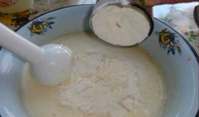 Добавляем в тесто муку и перемешиваем венчиком до отсутствия комков.