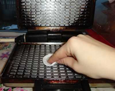 Включите вафельницу нагреваться. Растительным маслом смочите ватный диск (или небольшой кусочек ткани) и протрите им стенки электроприбора. Теперь можно приступать к выпечке.