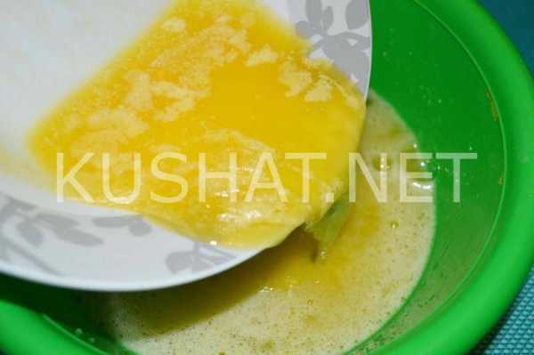 Масло сливочное или маргарин растопим, остудим и добавим к яйцу.