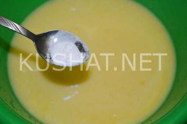 Добавьте соду. Вместо соды можно использовать разрыхлитель для теста.