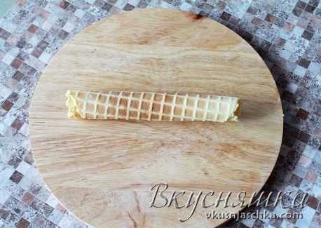 Чтобы хорошо скрутить вафлю, вам надо будет разложить ее на чистой поверхности и быстро скрутить в трубочку. Имейте в виду, основа сразу засыхает, поэтому действовать надо незамедлительно.