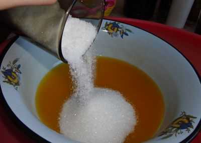 В металлической тарелке расплавьте пачку маргарина. Пока маргарин горячий всыпьте в него стакан сахара и мешайте до полного растворения. Лучше всего для этих целей использовать миксером.