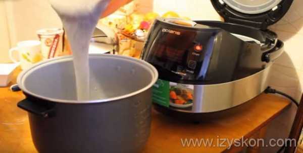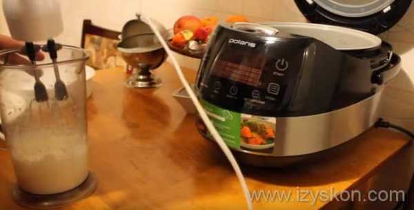- Перелить тесто в чашу мультиварки. Установить режим «Выпечка» на полчаса.