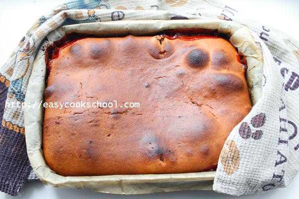 - Выпекать пирог на кефире с вареньем 45 минут.