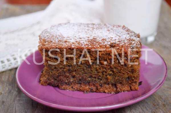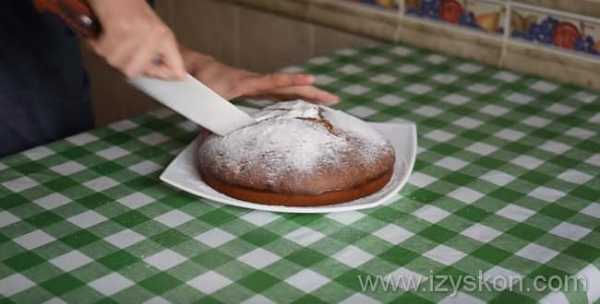 Даем пирогу полностью остыть и вынимаем его из формы. Украшаем так, как наша душа пожелает. Самый просто вариант – посыпать сахарной пудрой. Или украсить кусочками шоколада, который можно настрогать ножом с плитки.