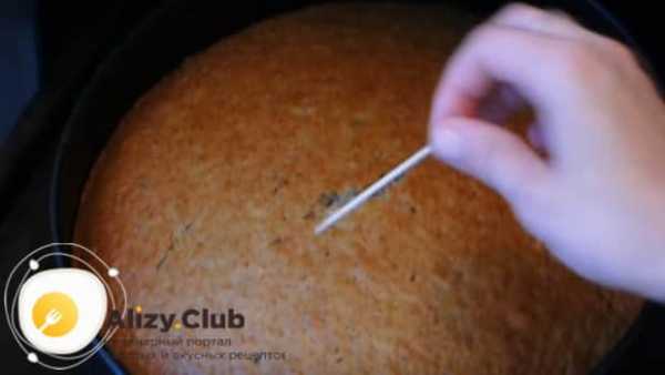 - Готовность проверяем, проткнув пирог зубочисткой. Если она выходит сухой, значит пирог готов.