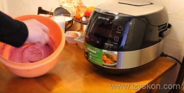 - Переложите тесто в смазанную мультиварку и готовьте 60 минут в режиме «Выпечка».