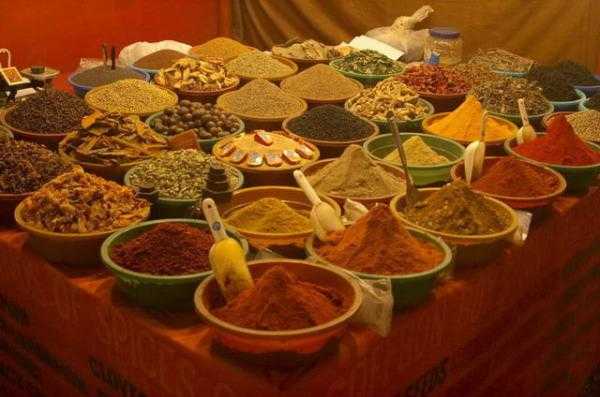Для русской кухни характерно употребление широкого выбора пряностей. Традиционно выращивались и использовались лук, чеснок, укроп, петрушка, хрен. В X веке уже начали завозить чёрный перец, лавровый лист, гвоздику. В конце XV века появились имбирь, шафран, корица. С XVII века в обиход входит соль. Отрицательно на количество употребляемых в русской кухне пряностей сказалось влияние немецкой кухни. Кроме того многие привозные пряности оставались недоступными для населения, и их не использовали во время готовки, а ставили непосредственно на стол во время еды, когда каждый желающий мог использовать пряности по собственному вкусу. Это обстоятельство породило ошибочное мнение, что в русской кухне пряности использовались ограниченно.
