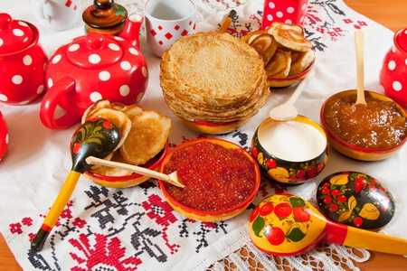 Исконно русским лакомством, золотым, ароматными и аппетитным, выступающим символом весеннего солнца, яркого и теплого, которое любили и уважали наши предки, являются классические русские блины, приготовленные на дрожжах. Для их выпекания в старину использовали дрожжевое опарное тесто на основе гречаной, пшеничной, просяной или ячменной муки. Для древних славян блины были поминальным, ритуальным кушаньем, которое ели на поминках, также блины были главным атрибутом праздника Масленица и символизировали собой горячее, красное солнце. Пеклись блины на специальных небольших сковородках, подавались политые топленным горячим маслом.